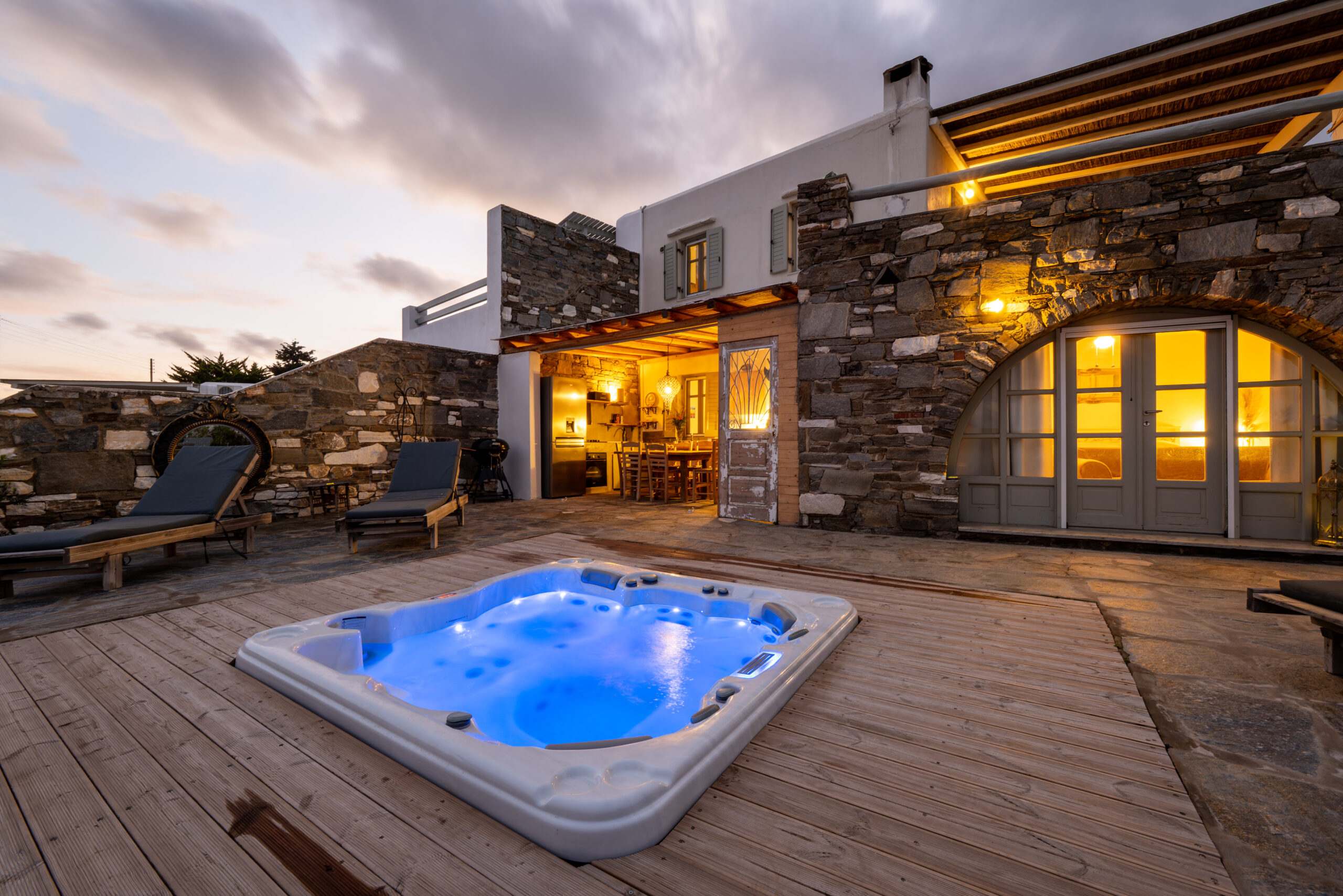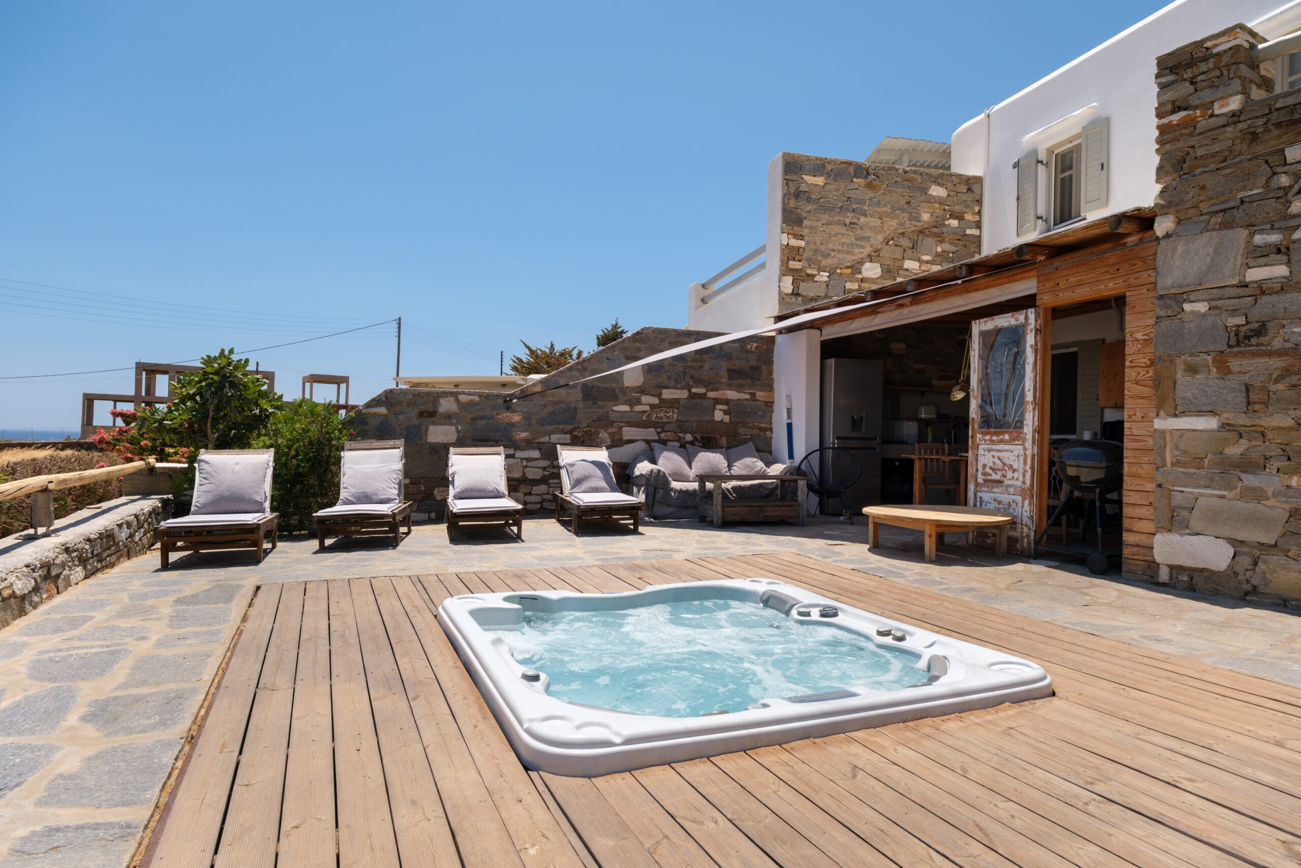 It has a large garden with furniture and sunbeds ideal for eating, sunbathing and relaxing.