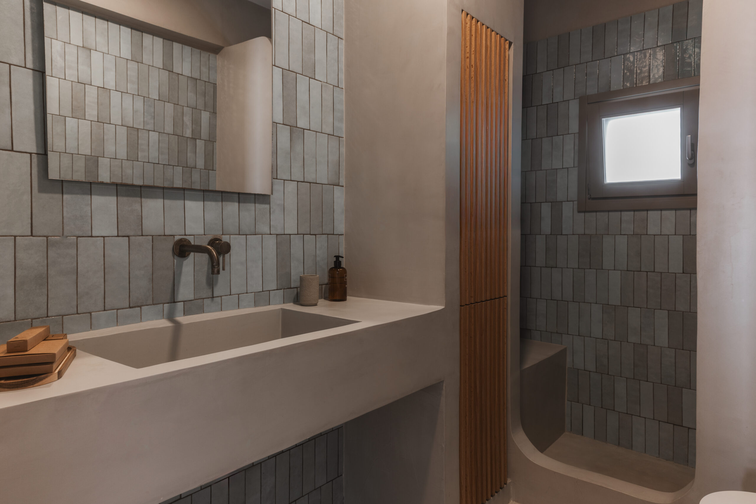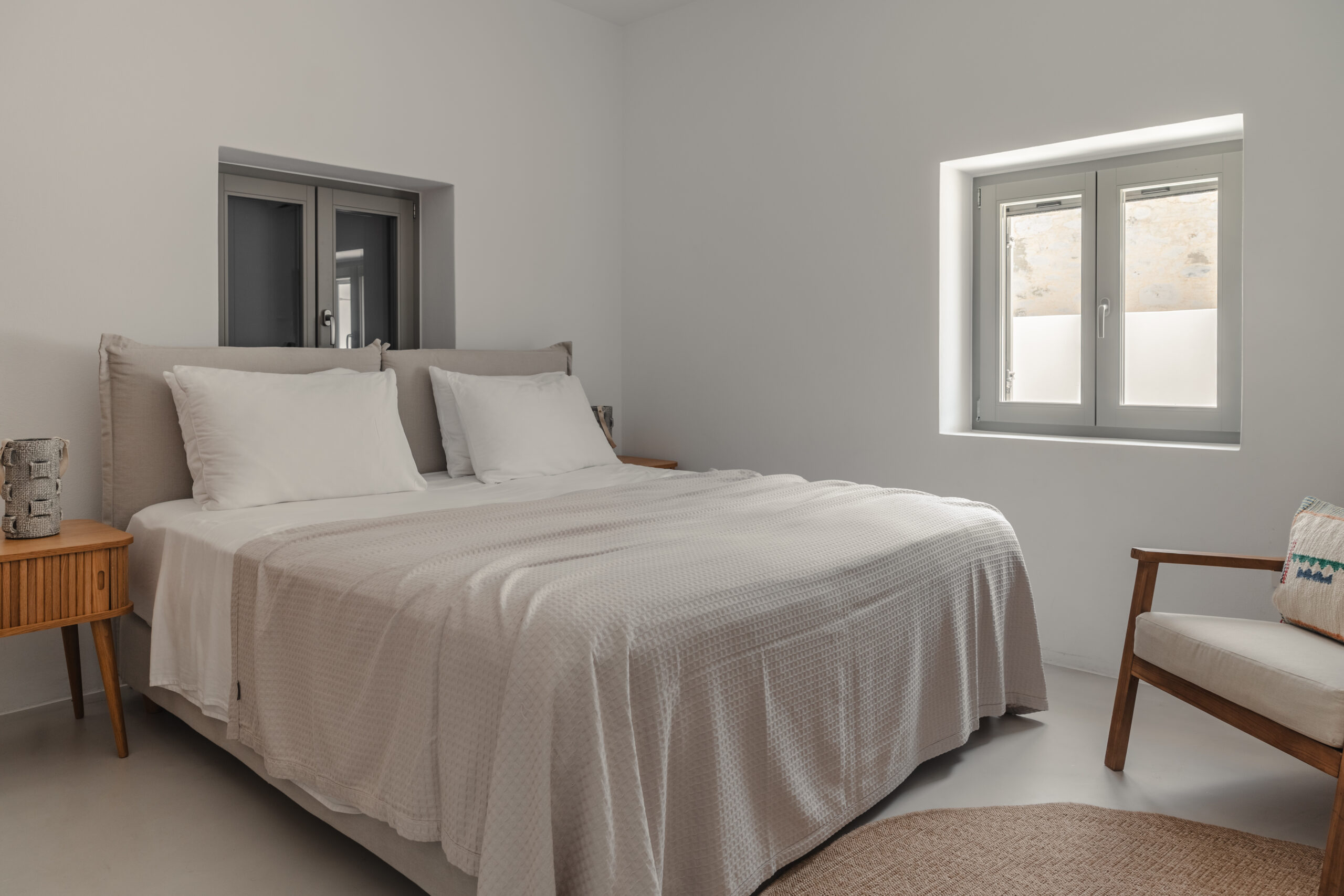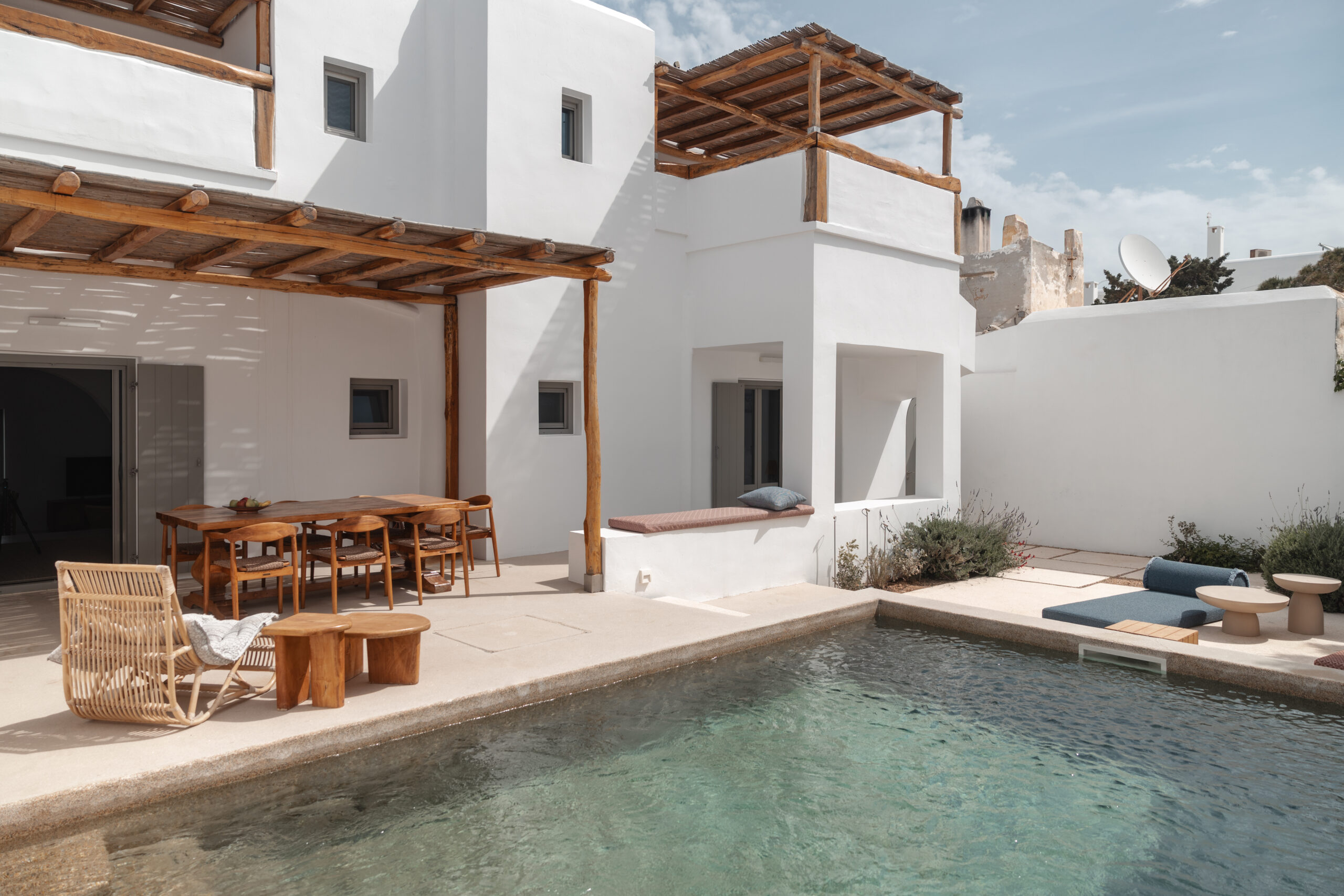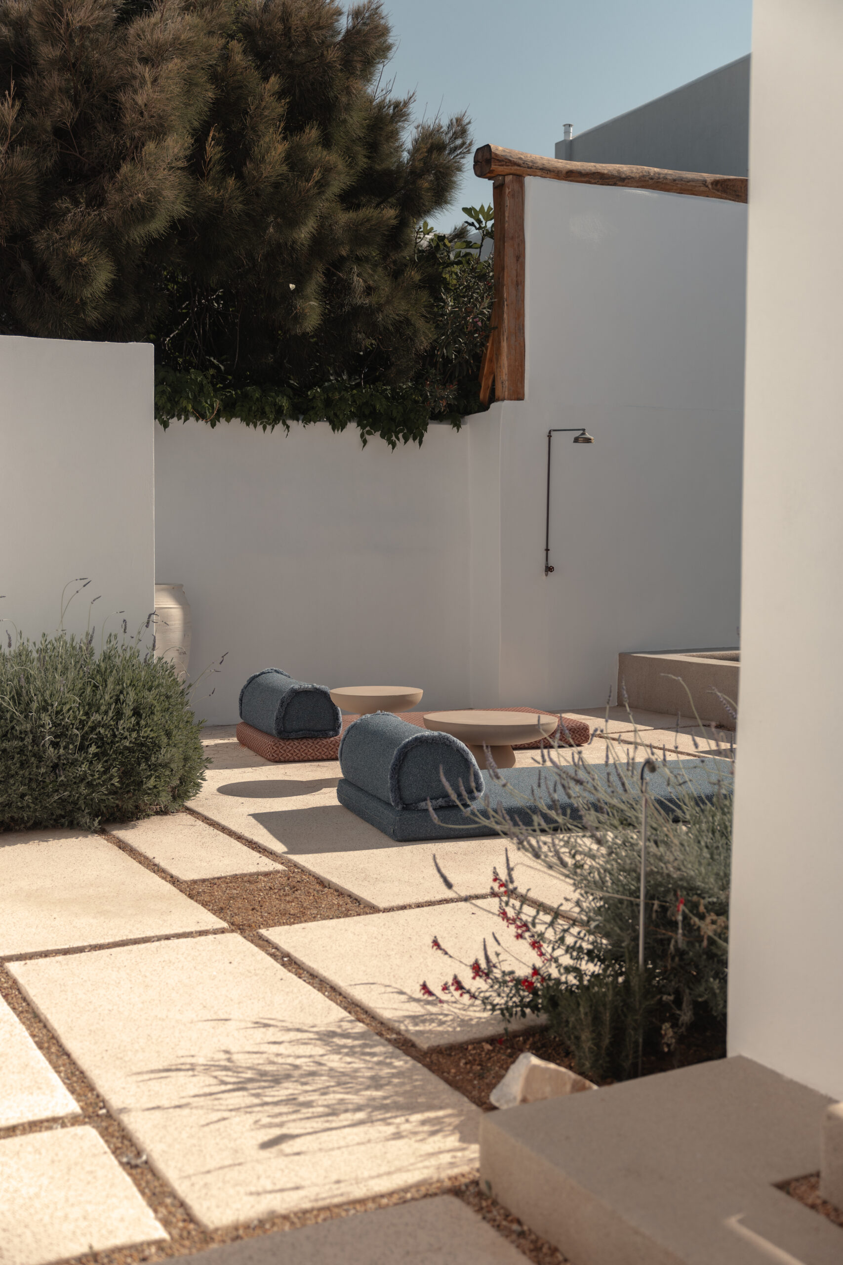 The Outdoor Experience The true highlight of Ammiralis is its expansive, sun-drenched private patio. Guests enjoy exclusive access to a magnificent private swimming pool, surrounded by comfortable sunbeds for absolute relaxation. With a dedicated outdoor dining area designed for al-fresco meals under the Aegean sky, this residence offers a seamless flow between indoor luxury and outdoor leisure.