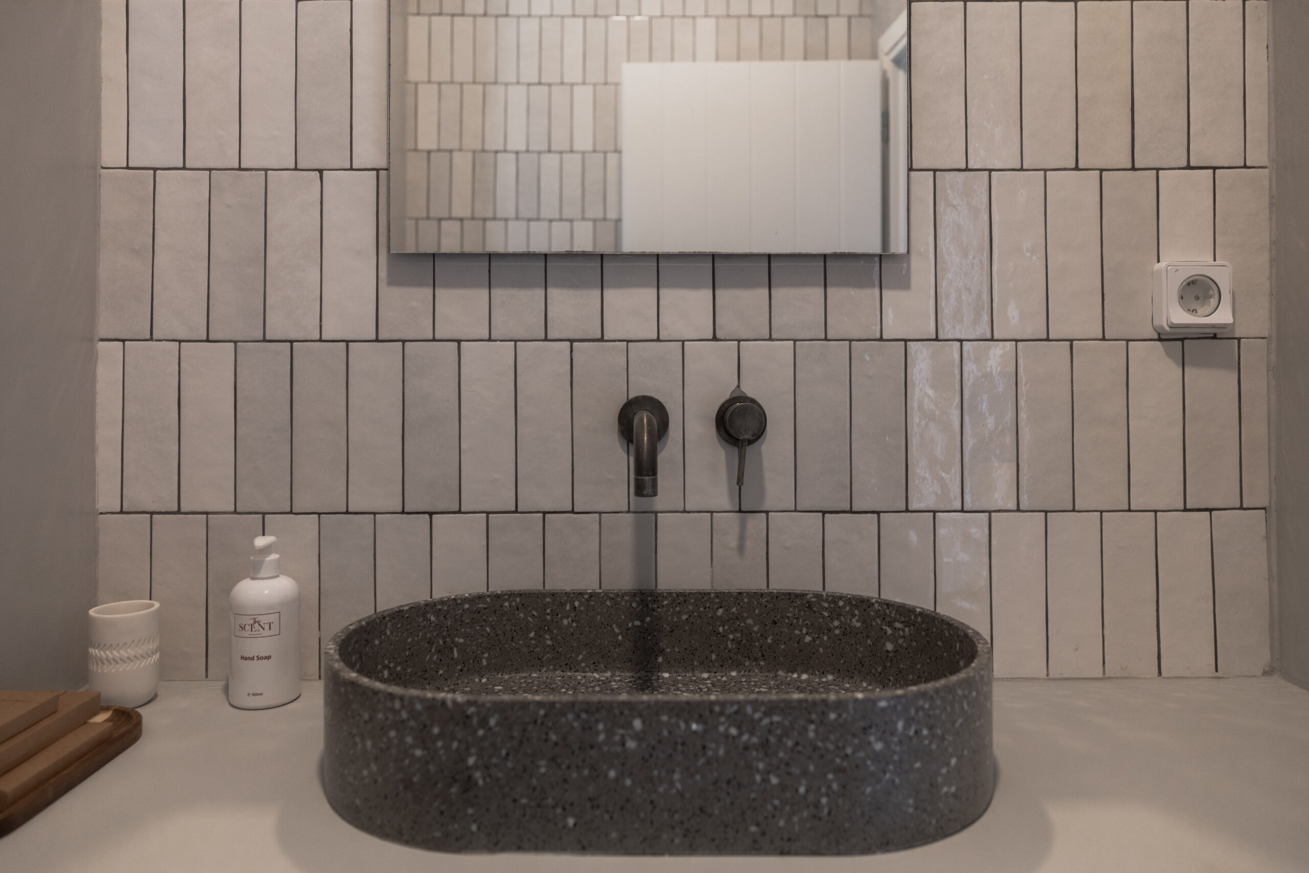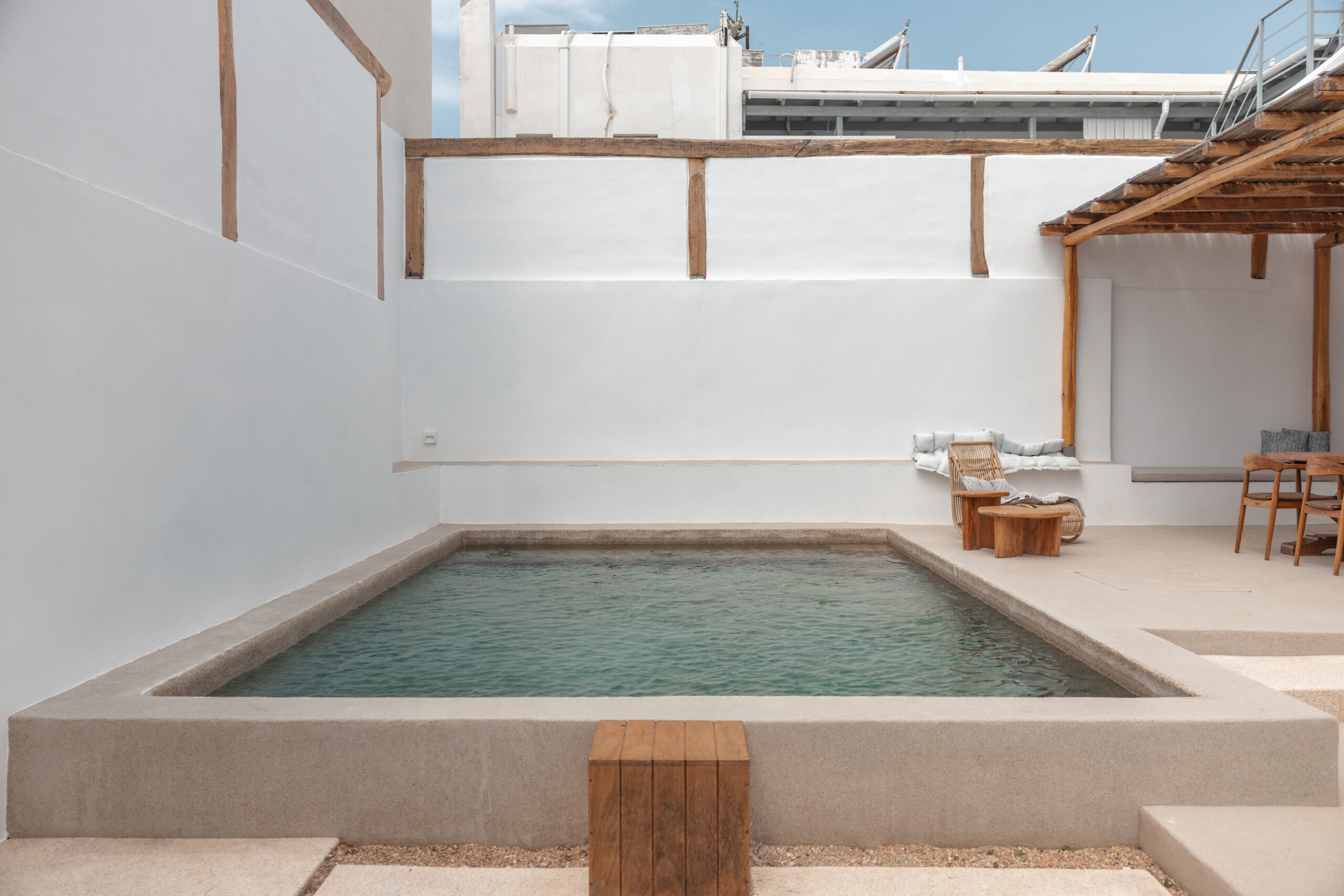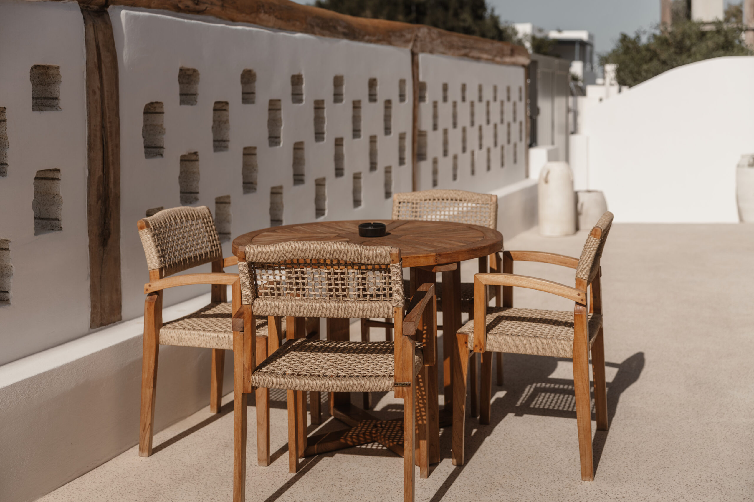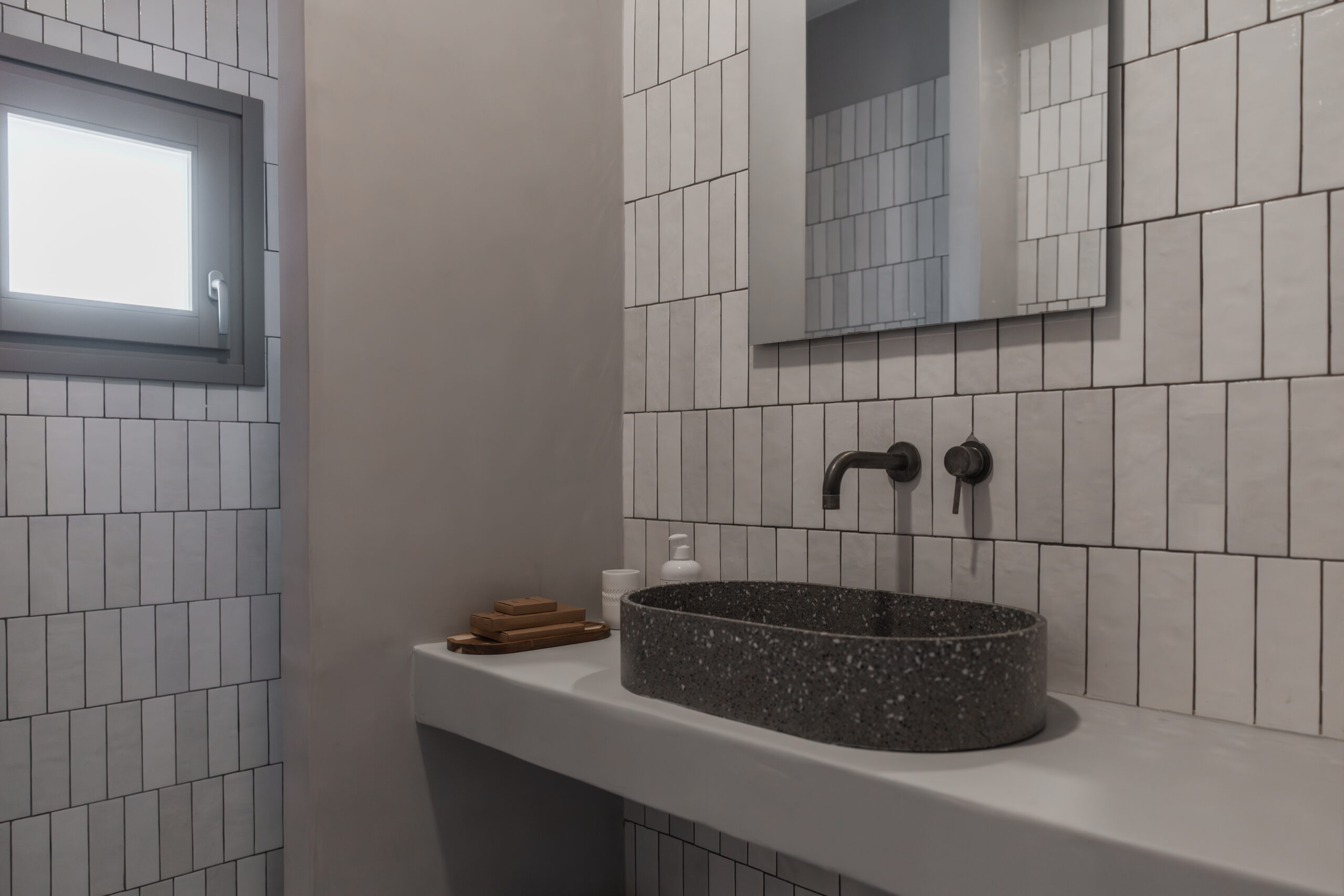 The Outdoor Experience The true highlight of Ammiralis is its expansive, sun-drenched private patio. Guests enjoy exclusive access to a magnificent private swimming pool, surrounded by comfortable sunbeds for absolute relaxation. With a dedicated outdoor dining area designed for al-fresco meals under the Aegean sky, this residence offers a seamless flow between indoor luxury and outdoor leisure.