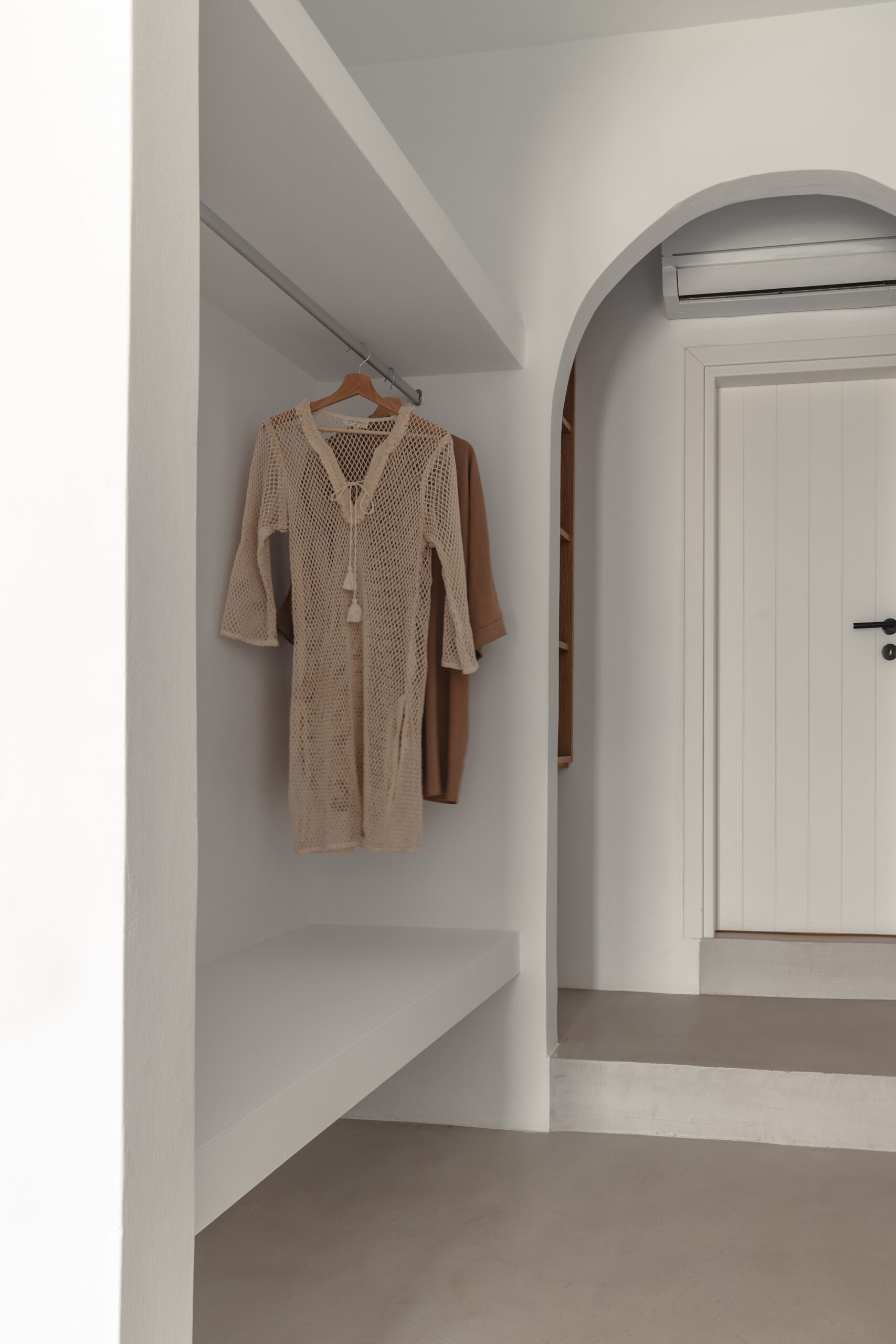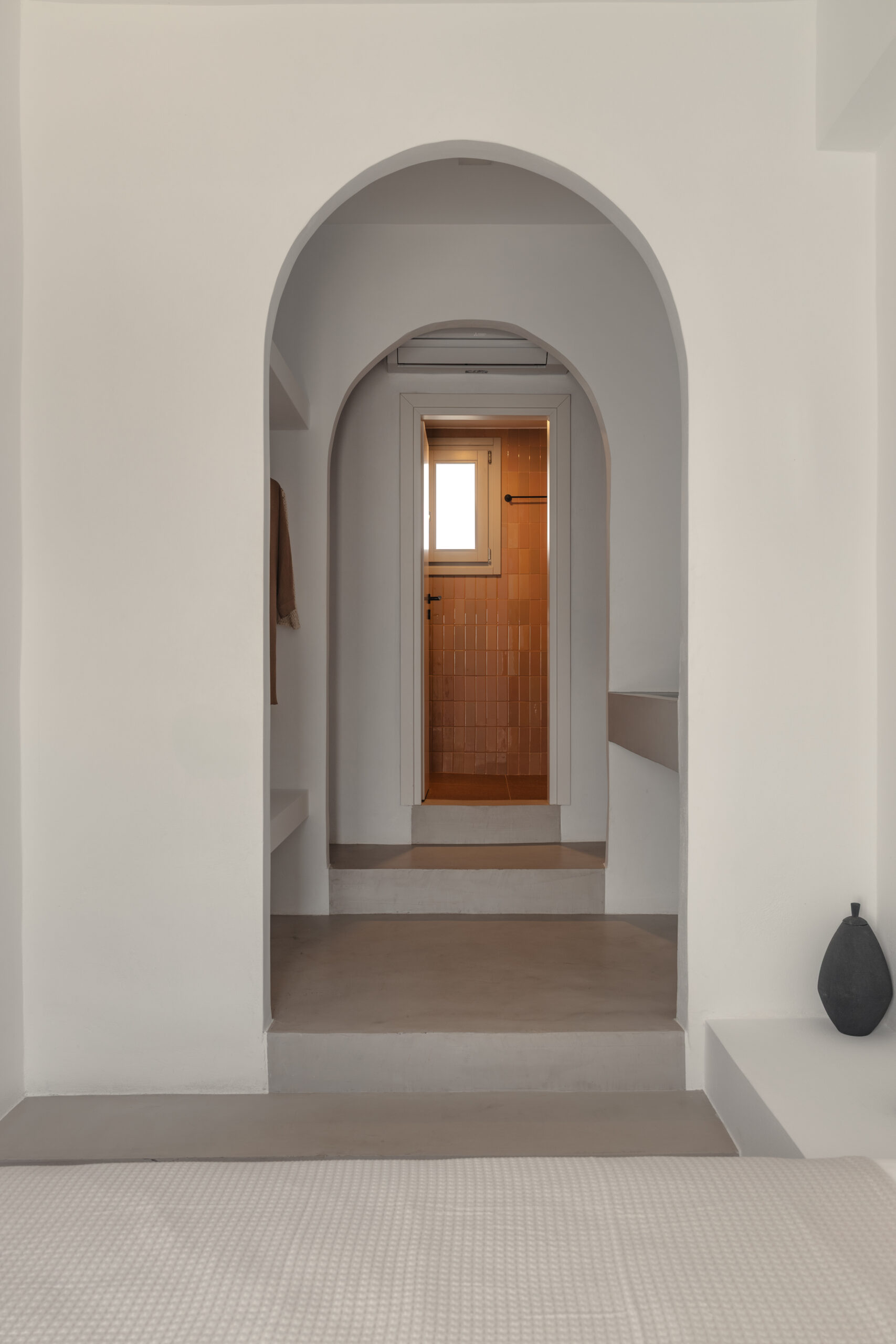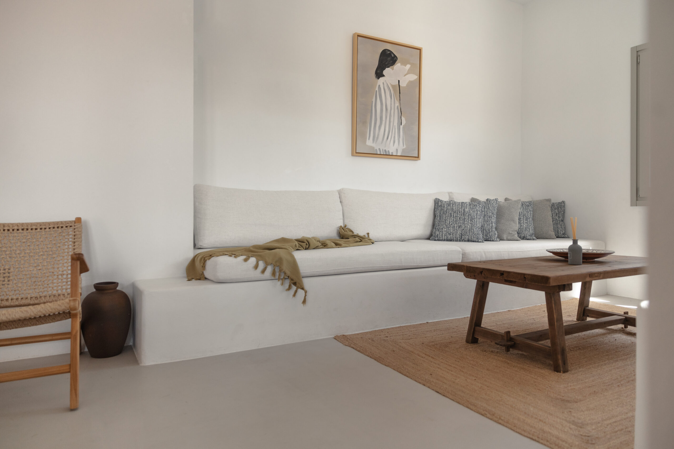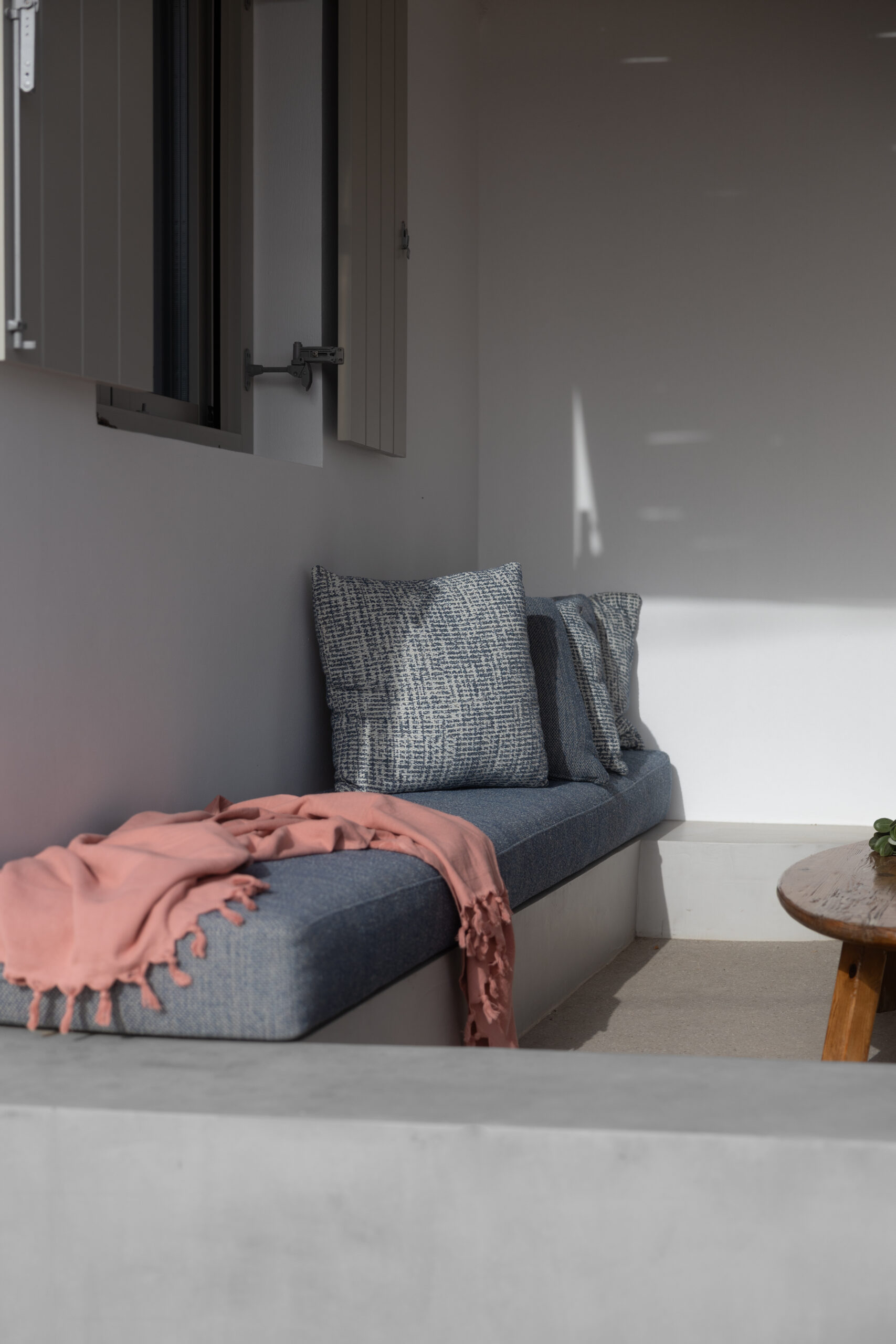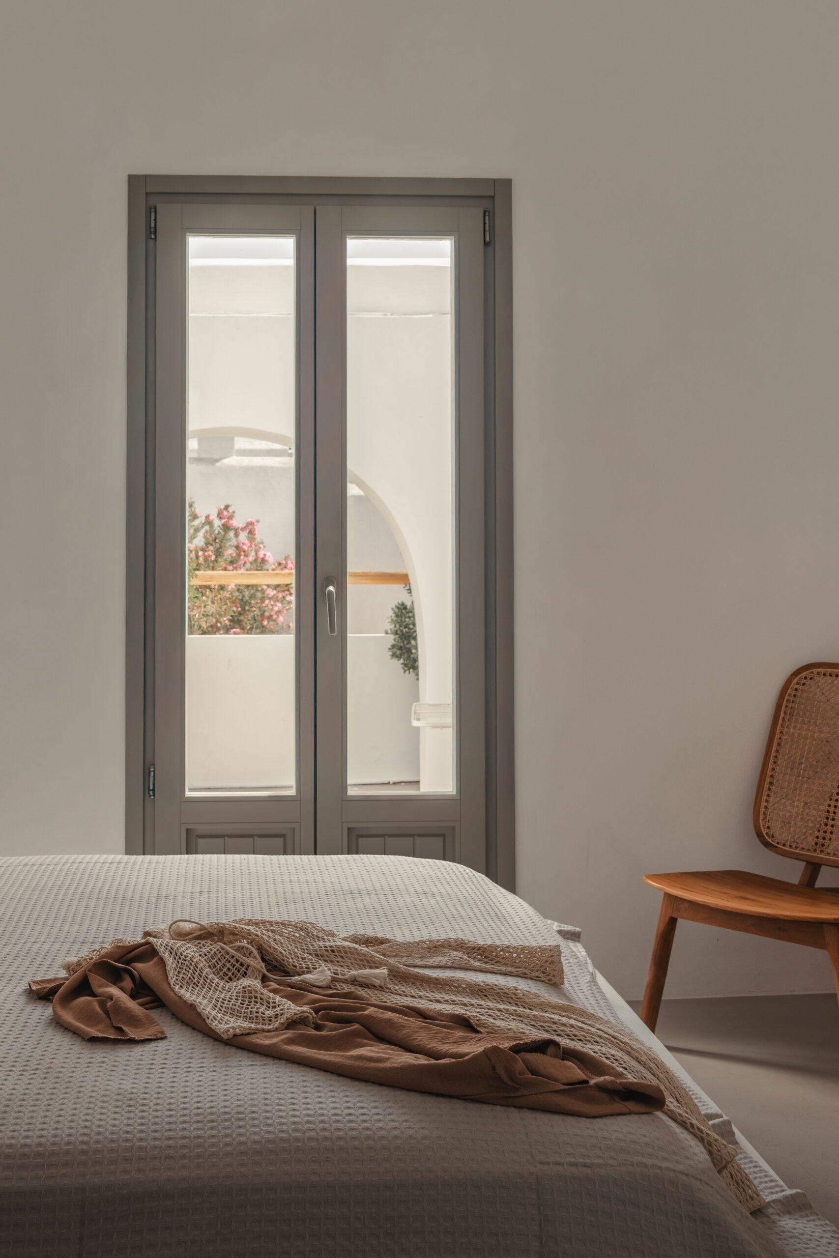 The Private Exterior Step outside to a private Mediterranean oasis. Guests of Malatesta enjoy exclusive access to an expansive patio, featuring a private plunge pool. Whether you are sunbathing on the elegant sunbeds or enjoying an al-fresco dinner with the Aegean Sea as your backdrop, the outdoor space is designed for pure relaxation.