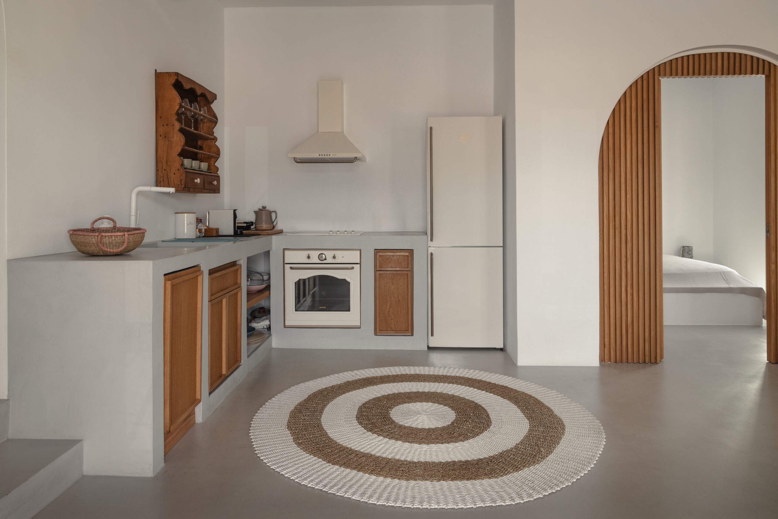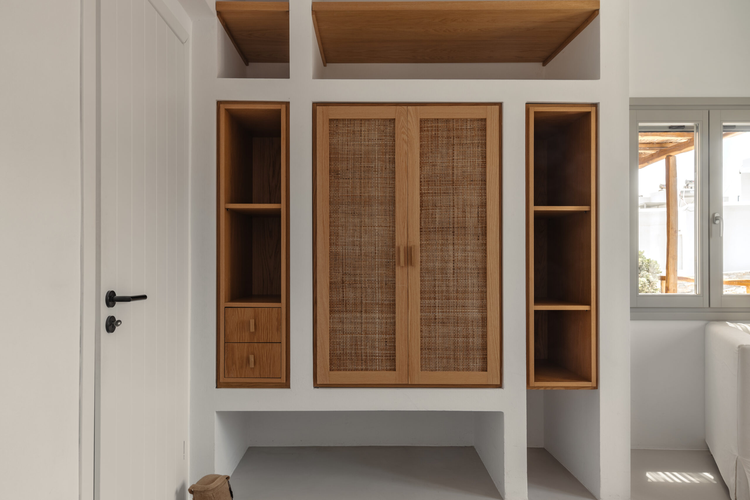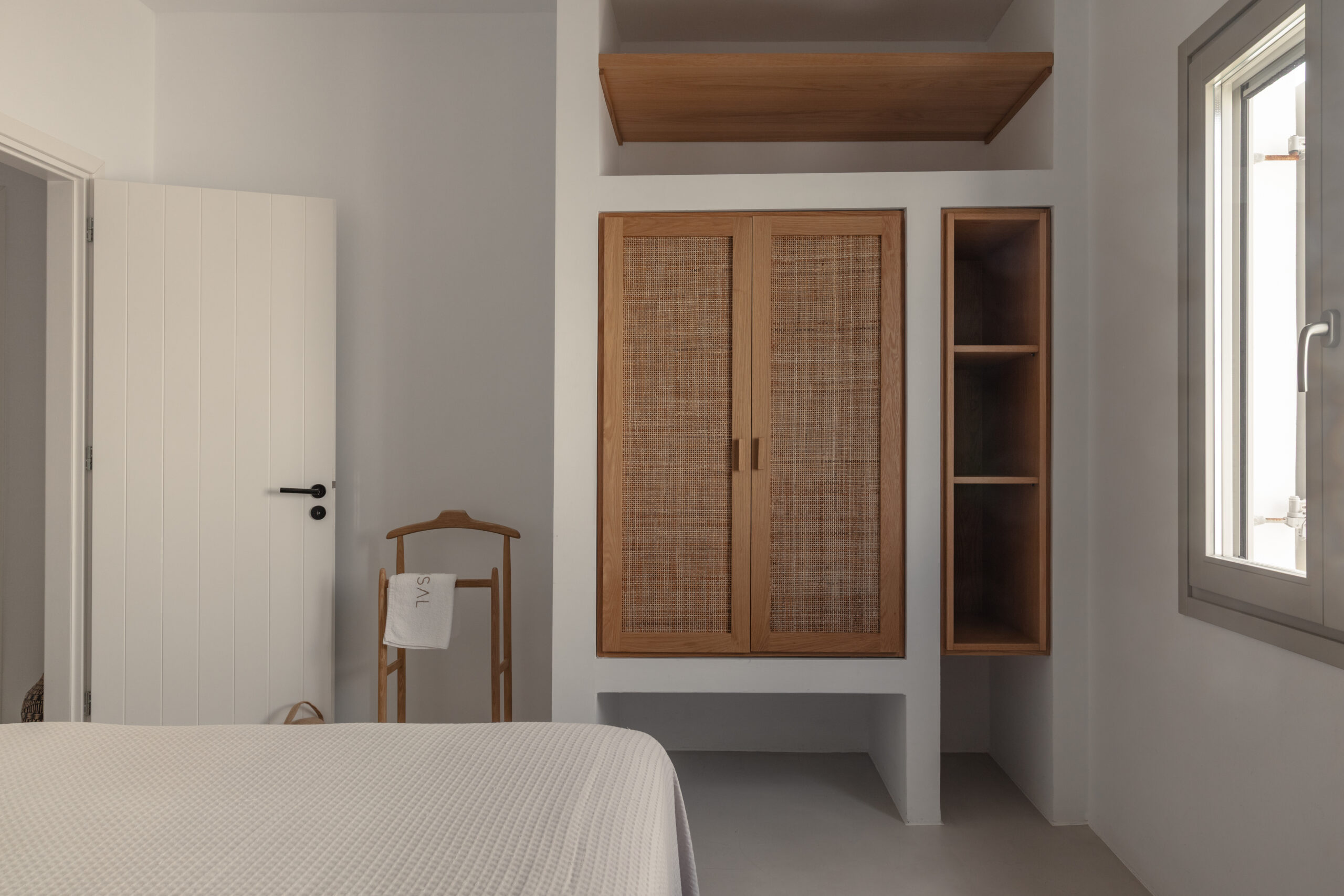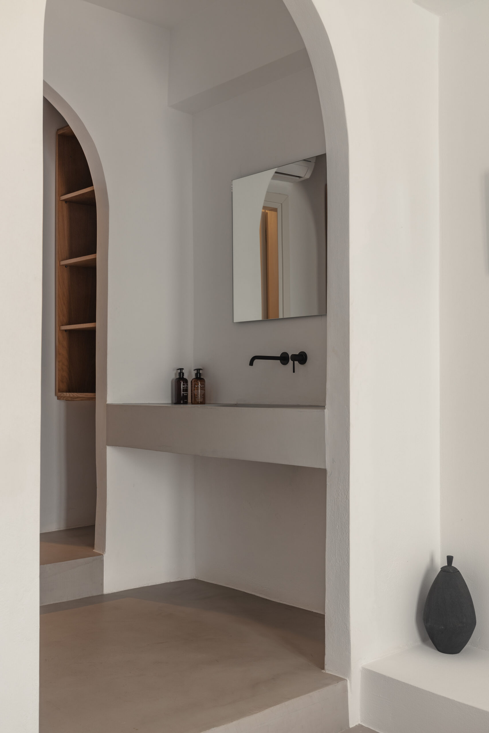 The Private Exterior Step outside to a private Mediterranean oasis. Guests of Malatesta enjoy exclusive access to an expansive patio, featuring a private plunge pool. Whether you are sunbathing on the elegant sunbeds or enjoying an al-fresco dinner with the Aegean Sea as your backdrop, the outdoor space is designed for pure relaxation.